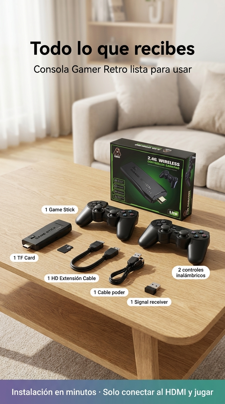 No 😊. Los más de 10,000 juegos ya vienen preinstalados en la consola. Solo conectas el game stick al puerto HDMI de tu TV, lo enchufas a la corriente, prendes la tele y empiezas a jugar. El internet solo te sirve si quieres ver tutoriales o reseñas, pero no es necesario para usarla.