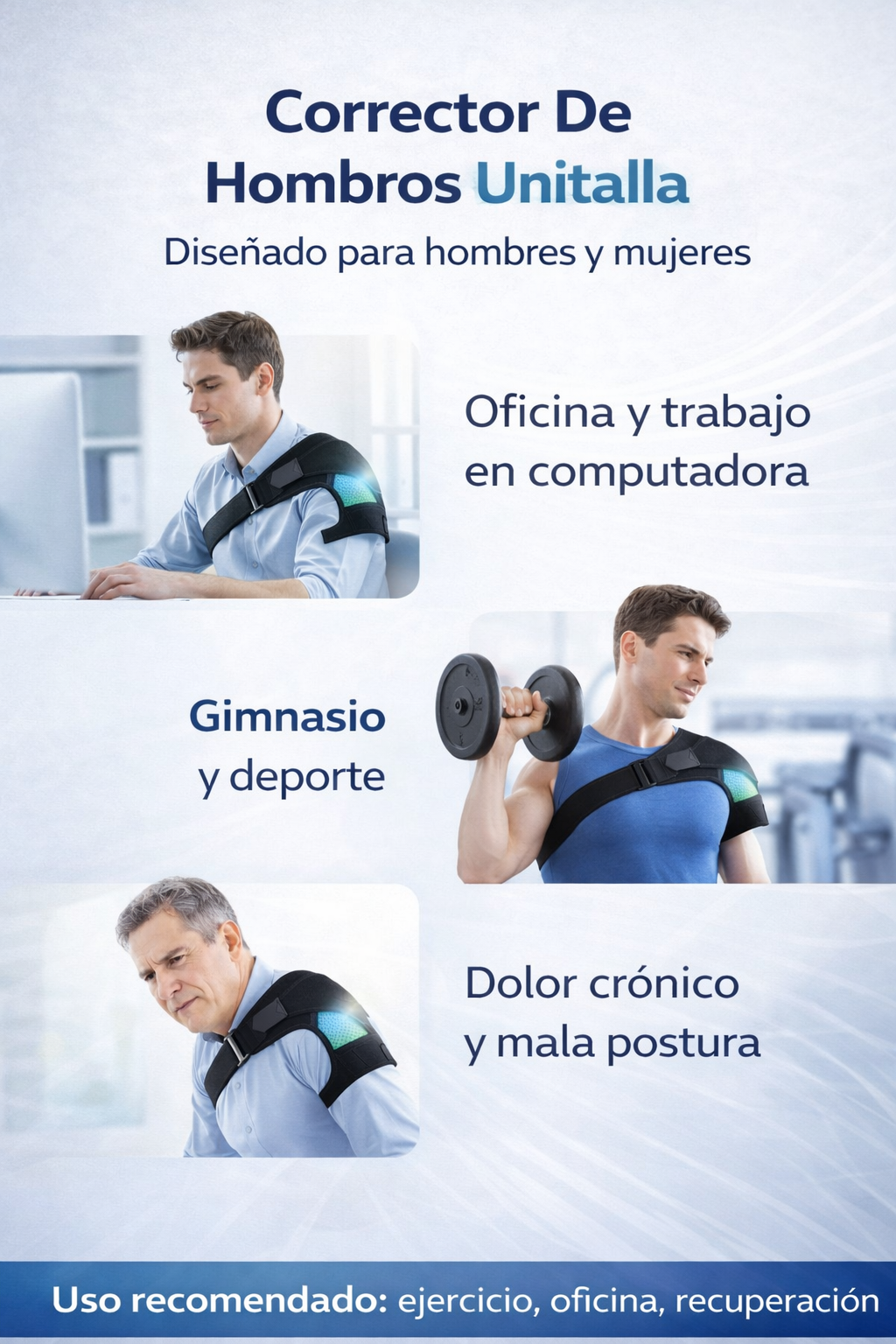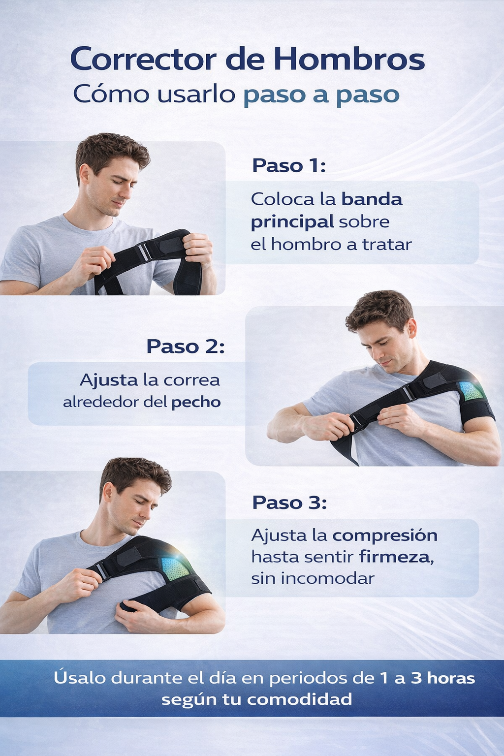 Se recomienda empezar con periodos de 1 a 2 horas diarias, e ir aumentando según tolerancia hasta 3–4 horas si lo necesitas. No es necesario usarlo todo el día; funciona mejor como soporte y recordatorio postural durante las actividades que más te generan dolor (computadora, gimnasio, trabajo físico, etc.).